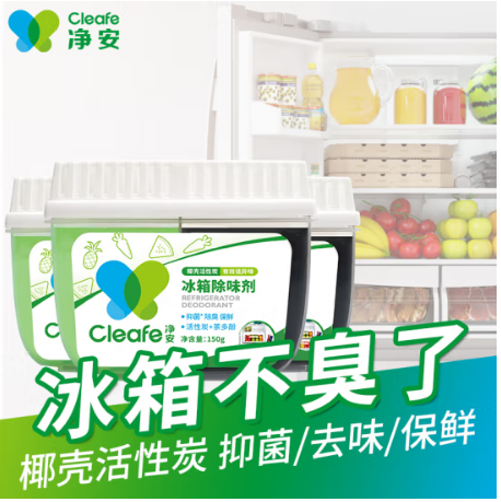 净安冰箱除味剂除臭消毒杀菌防串味150g*3盒天然椰壳活性炭冰箱神器 SKU:yzwhyp836490
