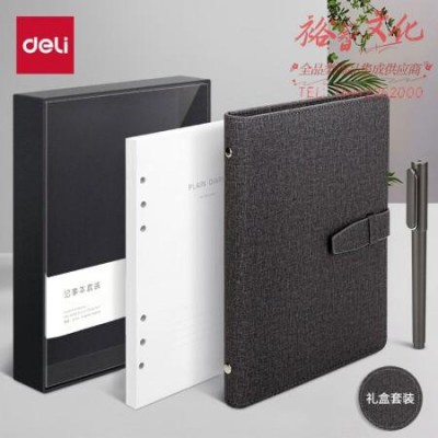 得力(deli)笔记本子礼盒套装中秋国庆礼物 送礼 25K时尚皮面记事本本 乐素中性笔 内页替芯 灰色22249 SKU:yzwhyp836639