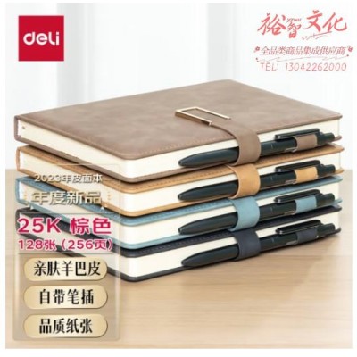 得力(deli)25K/128张羊巴皮加厚软面皮面本记事本日记本办公用品 棕色BP149 SKU:yzwhyp836662