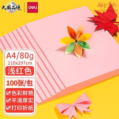 得力(deli)粉红折纸 A4 80g 100张/包 7757 SKU:yzwhyp836734