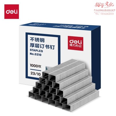 得力0210不锈钢厚层订书针订书钉23/10(银)(1000枚/盒)SKU:yzwhyp836798