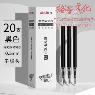 中性笔按动签字笔黑色按压碳素水笔笔芯学生考试专用笔圆珠水性笔办公用品笔类文具批发 黑色0.5mm 按动笔芯20支 S206SKU:YZB101135