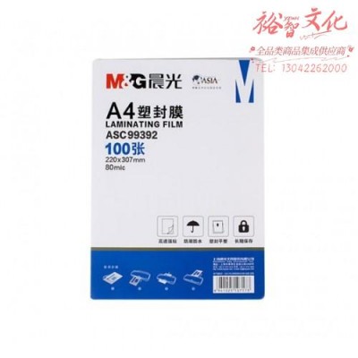 晨光(Mamp;amp;G) A4/100张 80mic透明高清塑封膜 220*307mm文件照片过塑膜ASC99392SKU:yzwhyp836850