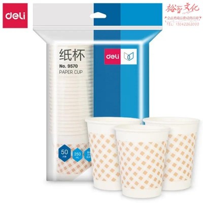 得力(deli)250ml(9盎司)加厚一次性杯子 水杯/纸杯 办公用品 9570SKU:yzwhyp836916