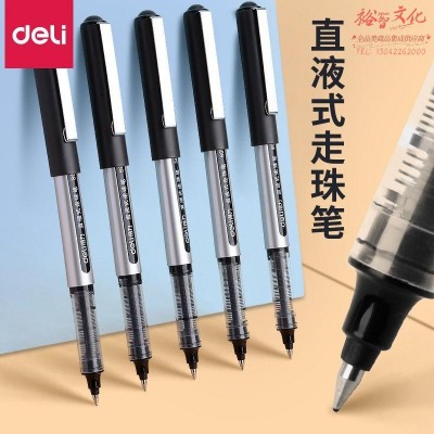 得力(deli)S656-Q1中性笔黑色直液式走珠笔0.5mm签字笔水笔学生考试用 12支/盒SKU:yzwhyp836947