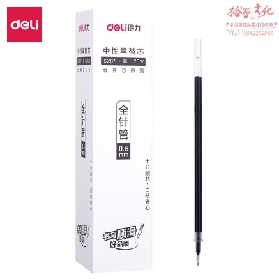 得力S207中性笔替芯0.5mm全针管(黑)(单支)(20支/盒)SKU:YZB101104