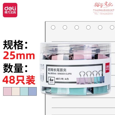 得力8554A时尚长尾票夹(混色)(48只/桶) SKU:yzwhyp837223