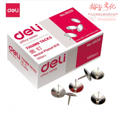 首页 > 办公用品 > 文具 > 得力 图钉 镀镍金属大头钉 图画钉 100枚/盒 0020 SKU:YZB101120