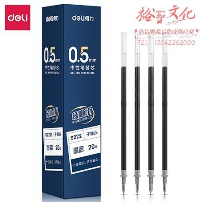 得力S222 臻顺滑中性笔替芯0.5mm子弹头(墨蓝)(20支/盒) SKU:yzwhyp837477
