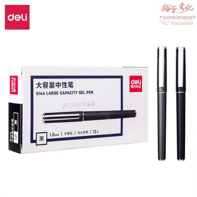 得力S144办公大容量中性笔 1.0mm子弹头(黑) SKU:yzwhyp837482