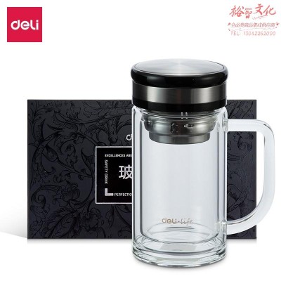 得力8989玻璃杯(透明)(只)320ml 双层保温玻璃杯带茶隔滤网隔热不烫手 SKU:yzwhyp837523