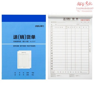 得力3537无碳复写单据(蓝)129*188mm(本) SKU:yzwhyp837596