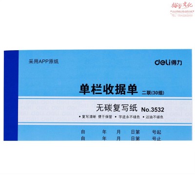 得力3532无碳复写单据(蓝)87*175mm SKU:yzwhyp837597