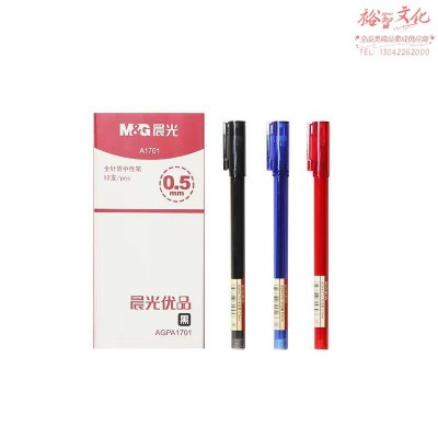 晨光(Mamp;amp;G)AGPA1701 优品全针管签字笔拔盖中性笔水笔 黑色 0.5mm 12支/盒 SKU:yzwhyp838006