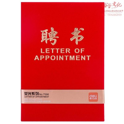 得力 7598 聘书 8K烫金红色 展开尺寸355*257mm 内芯尺寸336*246mm(套) SKU:yzwhyp838007