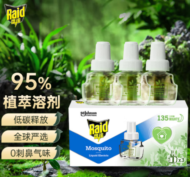 雷达(Raid)植萃 蚊香液 驱蚊液 135晚24ml×3瓶 补充装蚊香液 无香型351385 SKU:yzwhyp838051