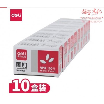 得力 0020图钉(100粒/盒) 10盒装 SKU:yzwhyp838076