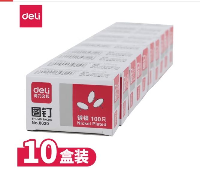 首页 > 办公用品 > 文具 > 得力 0020图钉(100粒/盒) 10盒装 SKU:yzwhyp838076