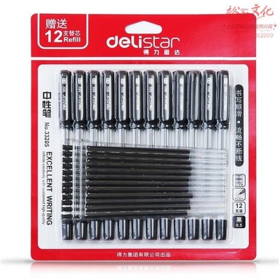 得力33205中性笔0.5mm半针管(黑)(12 12/卡)SKU:yzwhyp838617