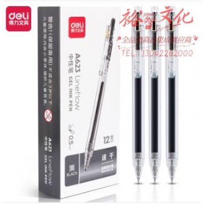 得力A623学生中性笔0.5mm按动加强型针管速干(黑) 12支/盒,单位:盒SKU:yzwhyp838776