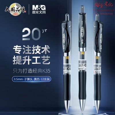 晨光(Mamp;G)文具 子弹头中性笔 K35/0.5mm黑色中性笔 按动笔 经典子弹头签字笔 办公用水笔 12支/盒SKU:yzwhyp838934