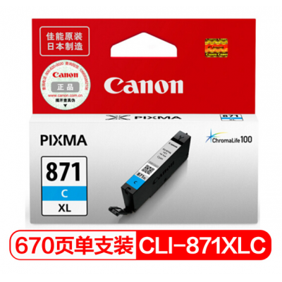 佳能(Canon)CLI-871XL C 青色墨盒(适用MG7780、TS9080、TS8080、TS6080)