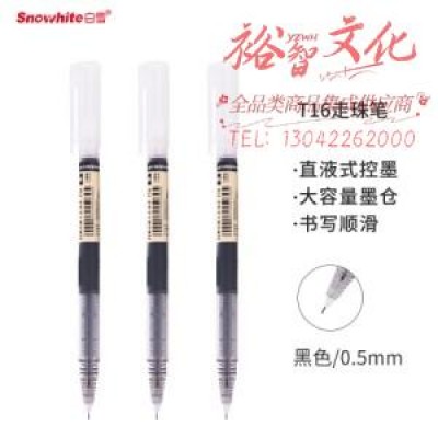 白雪(snowhite)T16 12支盒 0.5MM黑色速干直液式走珠笔中性笔.SKU:YZB101236