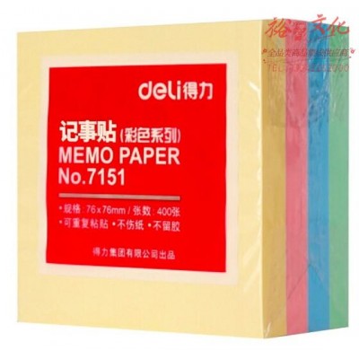 得力7151记事贴易事贴76*76mm(6包)(混)SKU:yzwhyp839442
