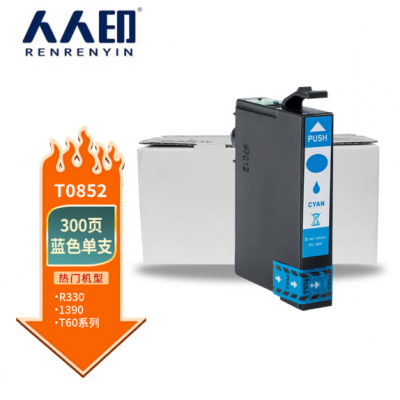 人人印T0852墨盒蓝色(适用爱普生R330墨盒T60EPSON1390打印机墨盒85NT0851NT0856N)