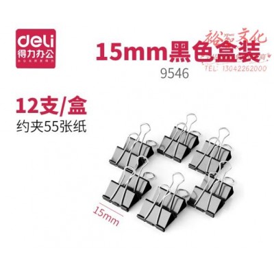得力 (deli) 9546 15mm 黑色长尾夹 燕尾夹 票夹 12只/盒SKU:yzwhyp840310