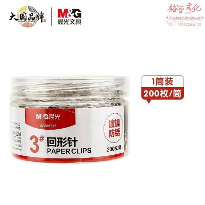 晨光(MG)文具 回形针200枚/盒(3#镀镍防锈金属曲PVC桶装曲别针办公用品ABS91697)SKU:yzwhyp840375