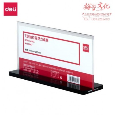 得力 50867 T型抽拉亚克力桌牌(透明).(20个起售)SKU:yzwhyp840519