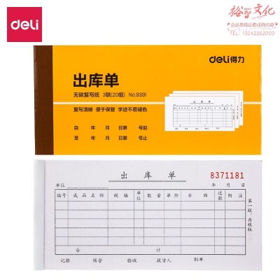 得力9391三联出库单据(黄)87*175mm(本)SKU:yzwhyp840653