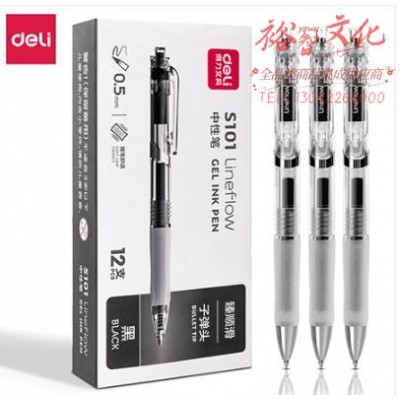 得力S101 办公中性笔0.5mm子弹头臻顺滑黑(黑)(支)SKU:yzwhyp840749
