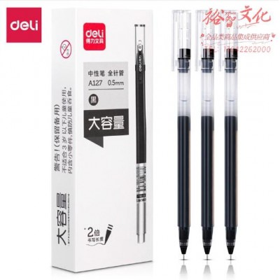 得力A127大容量学生中性笔0.5mm全针管(黑)(12支/盒)SKU:yzwhyp840793