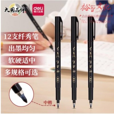 得力(deli)75515/黑色 中楷纤秀笔秀丽笔毛笔练字笔 软笔妙笔成书签名学生成人书法练习 12支/盒(整盒起订)SKU:yzwhyp840913