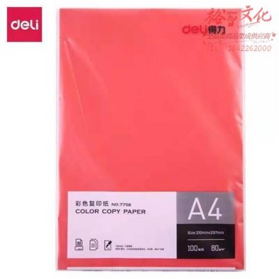 得力 7757 红色 彩纸100张/包 A4SKU:yzwhyp840956