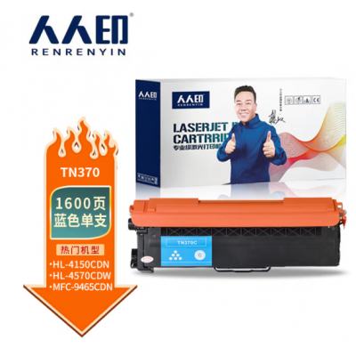 人人印TN370蓝色粉盒适用兄弟HL-4150CDN;HL-4570CDW;DCP-9055CDN;MFC-9465CDN打印机粉盒