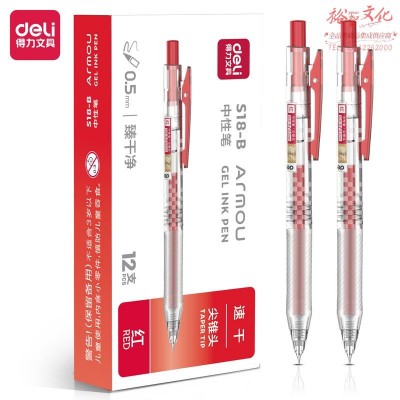 得力 S18-B简约臻干净扩容速干按动中性笔0.5mm尖锥头(红)(支)SKU:yzwhyp841099