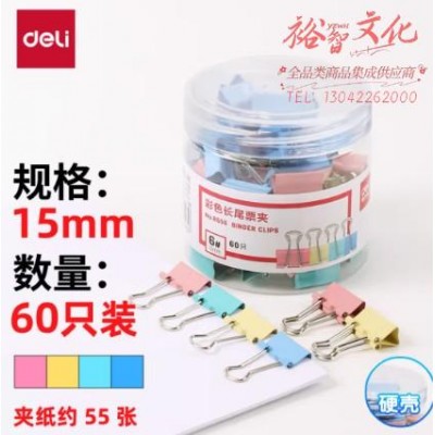 首页 > 办公用品 > 文具 > 得力(deli)60只15mm彩色长尾夹票夹 6#小号金属燕尾夹票据文件夹子 办公用品 60只/筒 8556SKU:yzwhyp841210