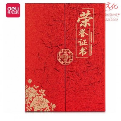 得力 24819荣誉证书(红色) 三折页设计 特种纸封面 附内芯(227*305mm)SKU:yzwhyp841372