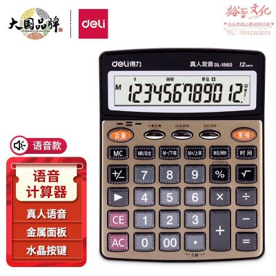 得力计算器 12位大屏幕1560桌面语音计算器SKU:yzwhyp841480