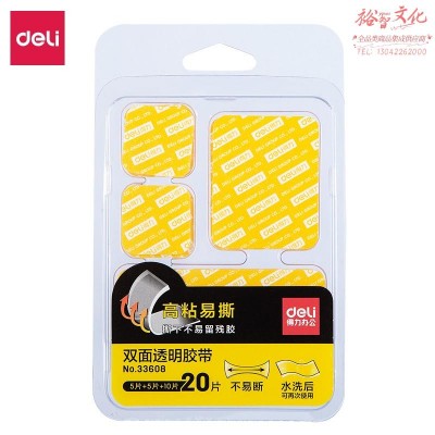 得力33608双面透明胶带(混装)(透明)(20片/包)SKU:yzwhyp841625