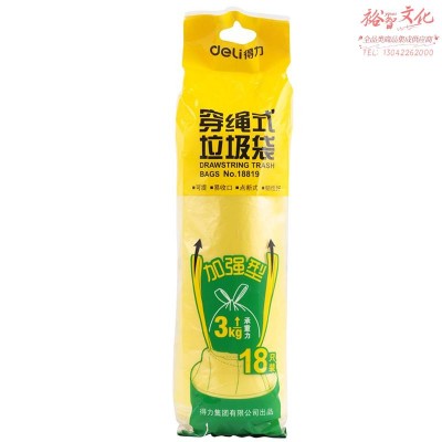得力18819 50*60cm/18只 穿绳式黄色垃圾袋 塑料袋 厨房卫生间办公家用生活大容量垃圾袋 加厚耐用SKU:yzwhyp841638