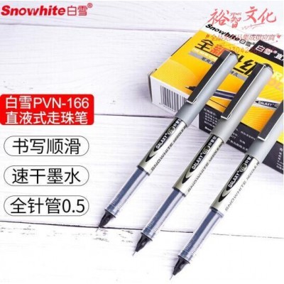 白雪(snowhite)全针管直液笔 0.5mm中性笔直液式走珠笔签字笔办公用品水笔 黑色 12支/盒 PVN-166SKU:YZB101342