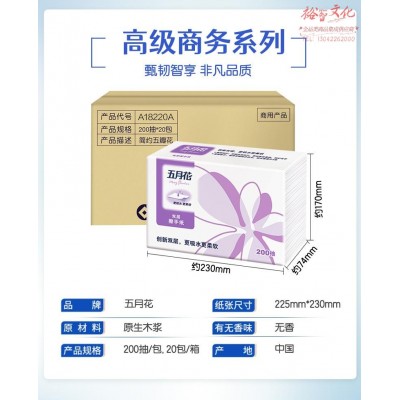 五月花(May Flower) 擦手纸 商务用纸酒店餐厅卫生间厨房纸巾2层200抽*20包(225mm*230mm)SKU:YZB101352