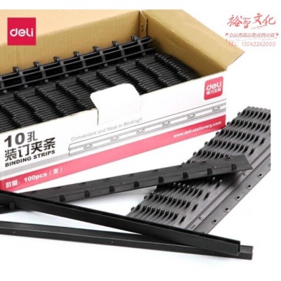 得力3824-10孔装订夹条(黑)300*3mm(100支/盒)SKU:yzwhyp841847