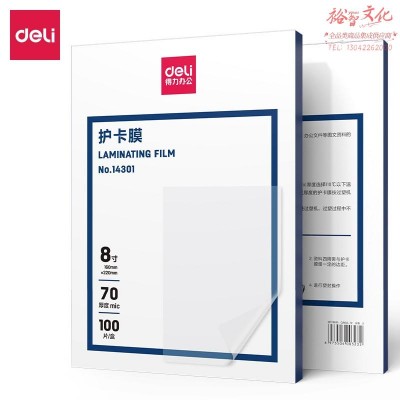得力(deli)14301过塑机塑封机膜过塑膜 过塑膜 优质专用护卡膜/塑封膜 70mic 8寸 100张/包SKU:yzwhyp841856