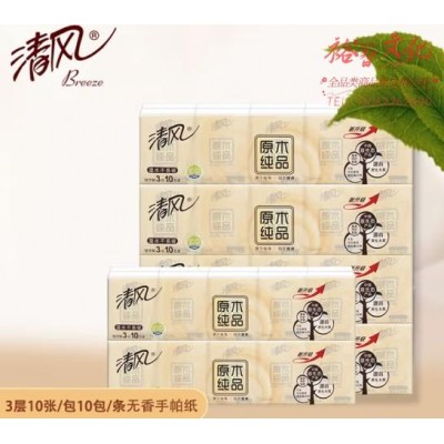 清风 酒店商用手帕纸餐巾纸 卫生间用纸 3层 10包/条 B66AA SKU:YZB101394