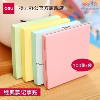 得力(deli)记事贴便利贴标签纸便签纸强黏性可反复粘撕 7737(76*76mm颜色随机) 一包装SKU:yzwhyp842141